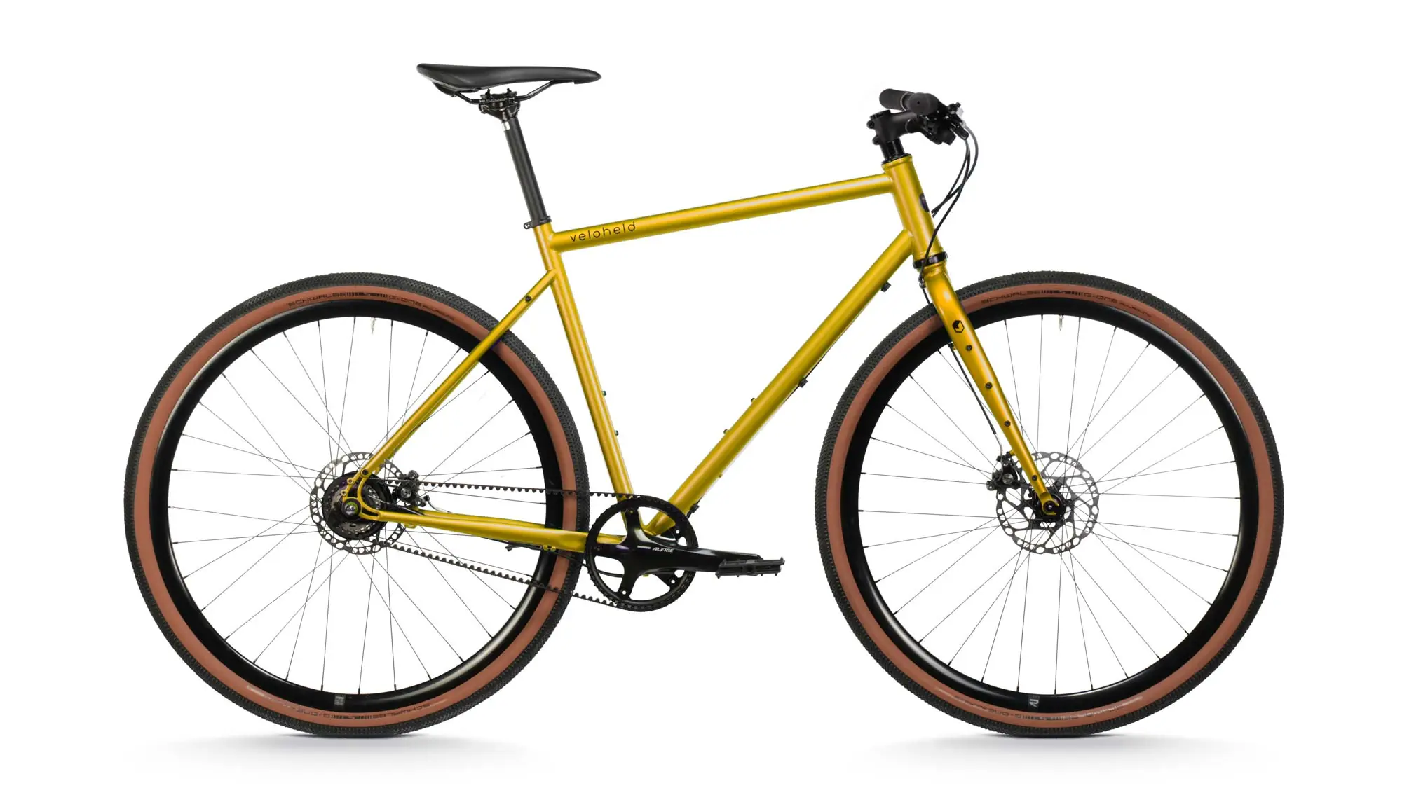 - Gravel bike with Shimano Alfine 8 or 11-speed hub gears and low-maintenance Gates CDX belt drive
