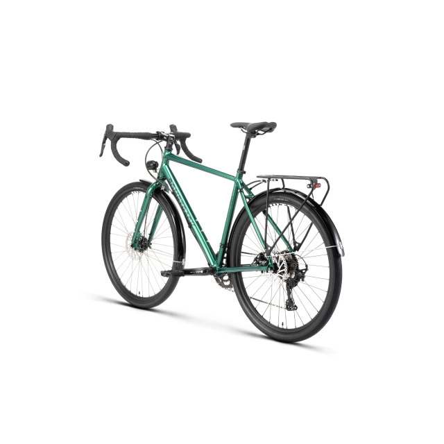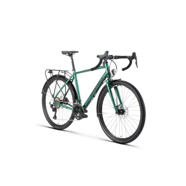 If you’re trying to use the van less and the bike more then Munroe Cargo is the bike for you. Specifically designed aluminium frame for load carrying with its frame-mounted front rack with a 30Kg capacity, a double top tube and tall head tube to deliver a stable ride with good visibility, even when loaded. Having a smaller front wheel aids manoeuvrability and both wheels have wide rims for strength and fat Kenda tyres. A Microshift 36/22 chainset coupled with a 9Spd 11-36 cassette allows you to keep the pedals spinning whatever the cargo. Shimano hydraulic brakes will keep you and your load safely under control and being a Bombtrack there are bottle, rack, and fender mounts on the frame for all your extra’s.